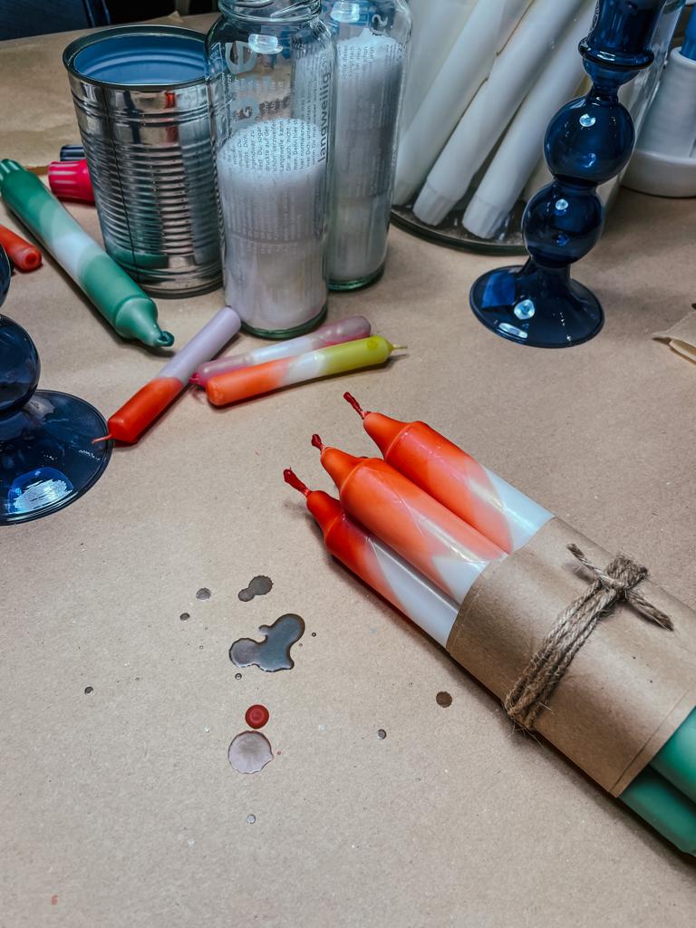 Deiner Fantasie sind dabei keine Grenzen gesetzt. Und hier ein Hinweis, nur damit ihr nicht sagt, ich hätte es euch nicht gesagt: das Kerzendippen macht süchtig. Einmal alles da und los geht’s! Man kann gar nicht wieder aufhören und einem fallen lauter schöne Farbkombinationen ein.