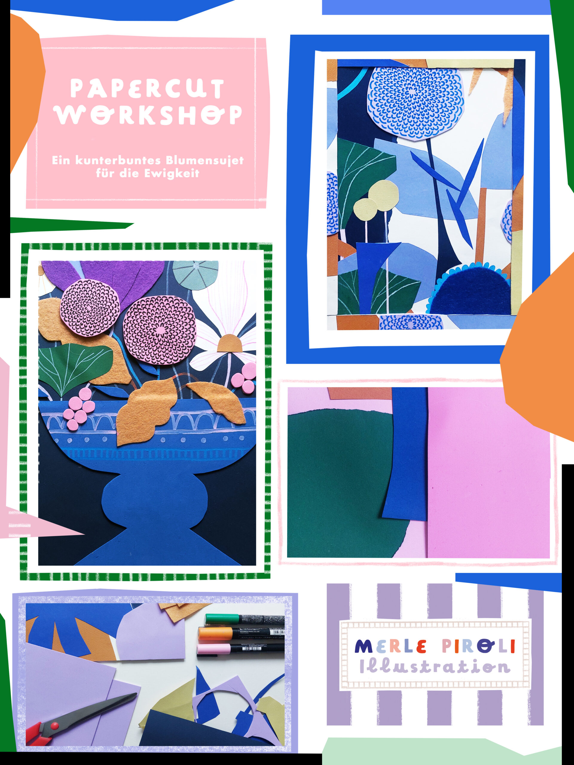 Die Lübecker Künstlerin und Illustratorin Merle Piroli gibt eine Einführung in die Papercut und Collage Technik. In diesem Workshop zeigt Sie Möglichkeiten auf mit einfachsten Mitteln Abstrakte Blumenstillleben zu zaubern.